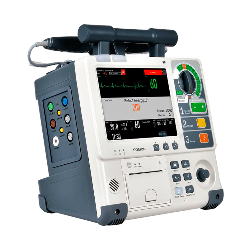 Desfibrilación manual, DEA, marcapasos, ECG de 5 derivaciones, RESP, grabadora térmica